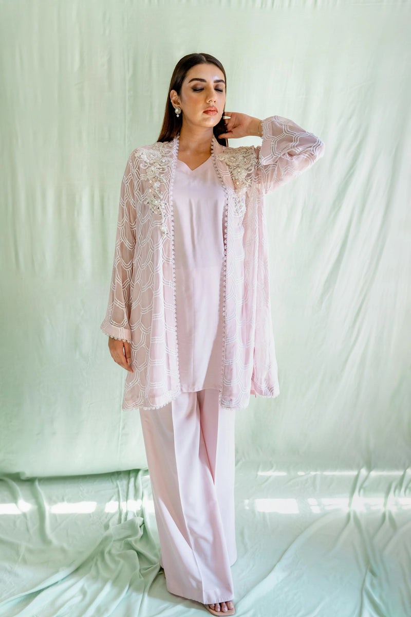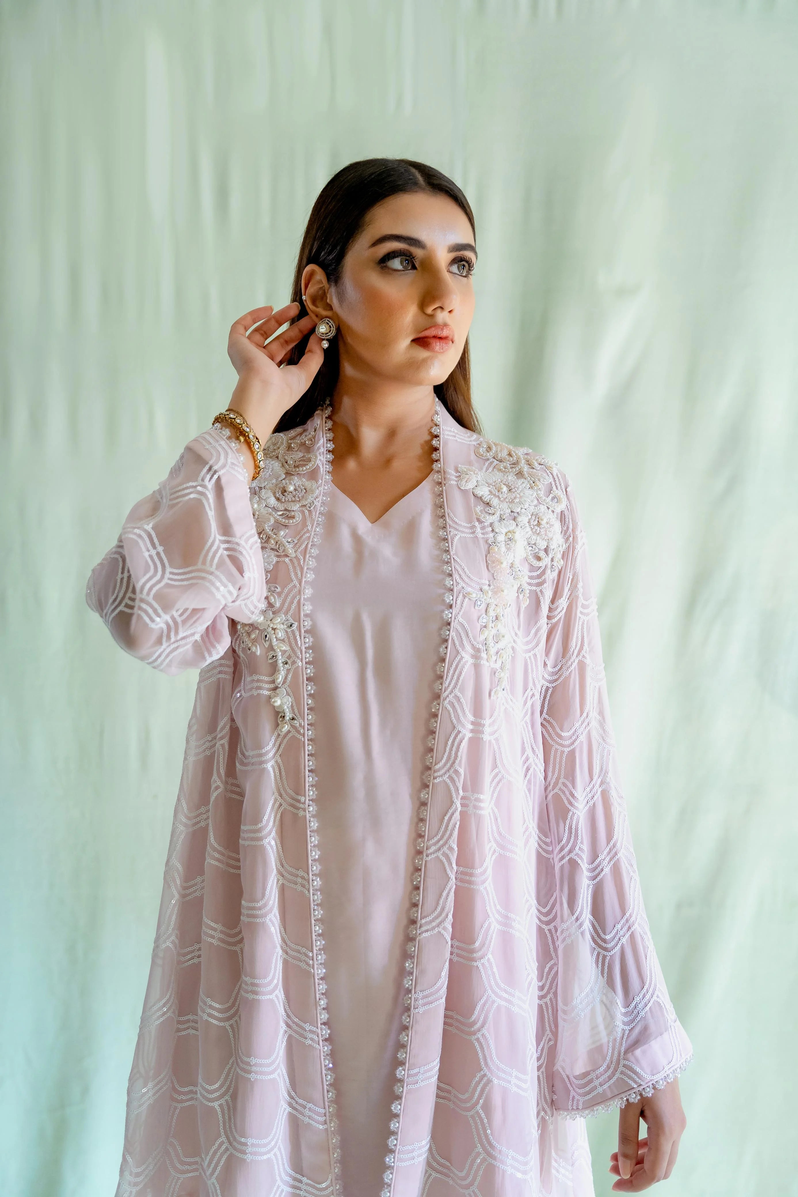 Effusing opulence! This stunning chiffon Set is a masterpiece of understated luxury, featuring an intricate sequin pattern, this one-of-a-kind piece drapes elegantly on the body, tailored for a comfortable and relaxed fit.